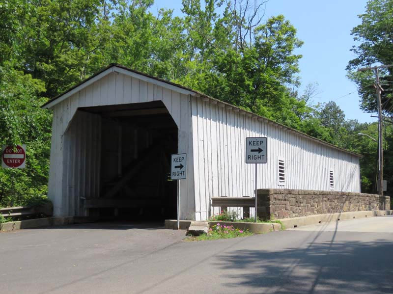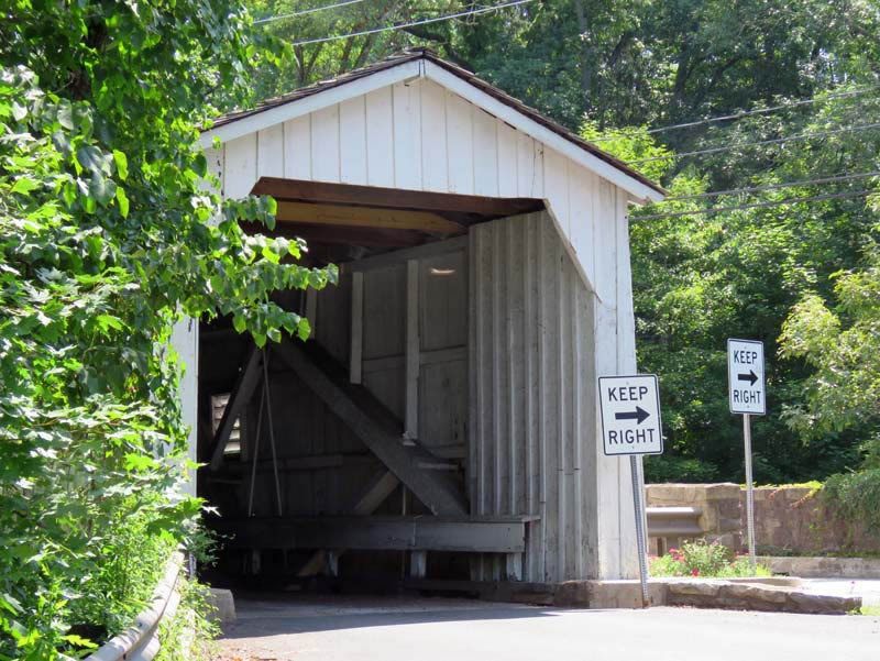 When carriages gave way to cars, drivers had to stop and honk before crossing the one-lane span. An eastbound lane was added in the form of an uncovered concrete and stone bridge, eliminating the need for westbound travelers driving through the covered bridge to stop and honk.