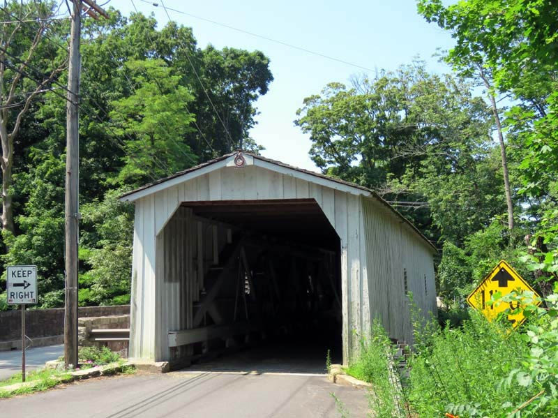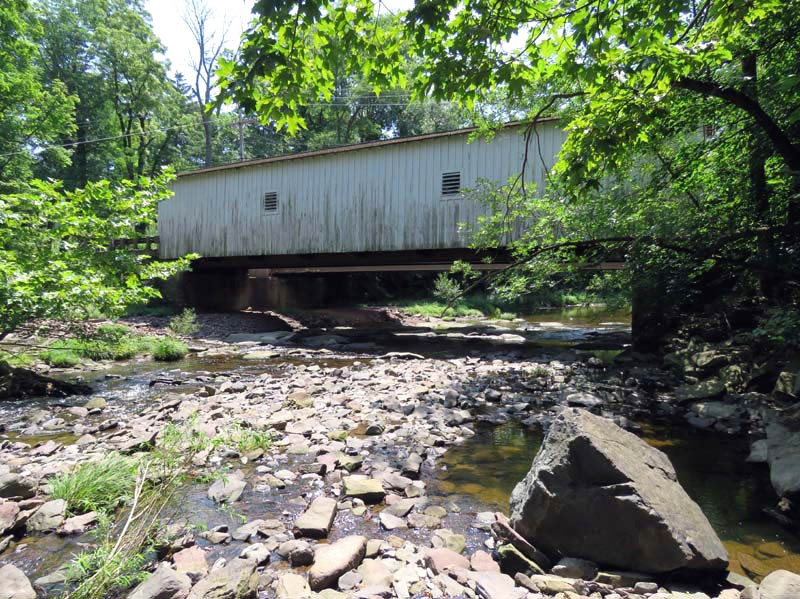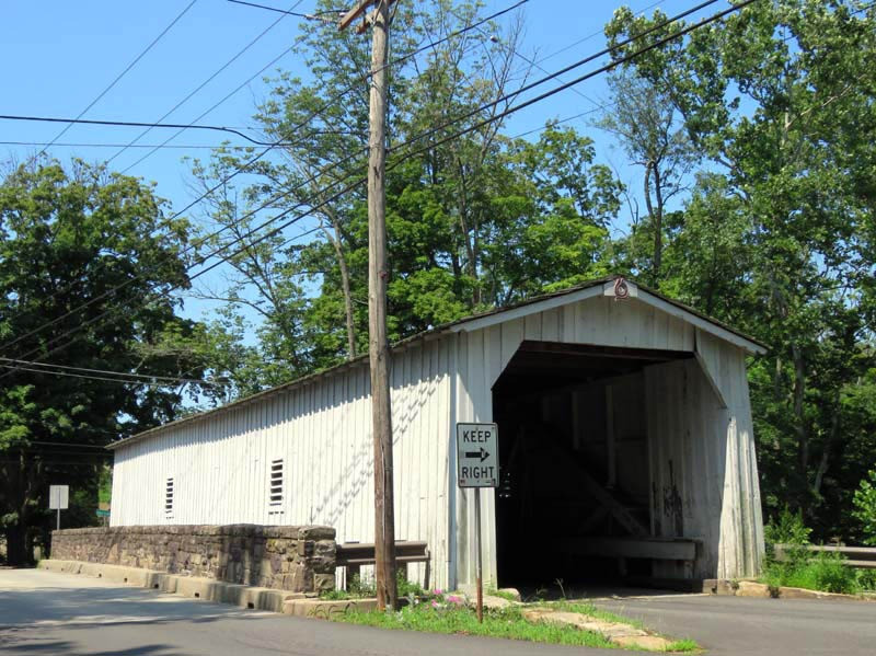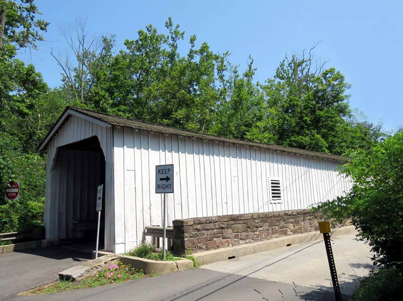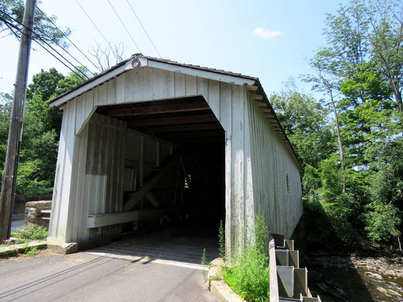 As the last historic covered bridge in the state of New Jersey, it is listed on the National Register of Historic Places. The bridge was first constructed in 1872, but after being damaged in 1960, it was dismantled and replaced with a modern bridge. In 1961, due to public outcry, the bridge was rebuilt from the original materials.