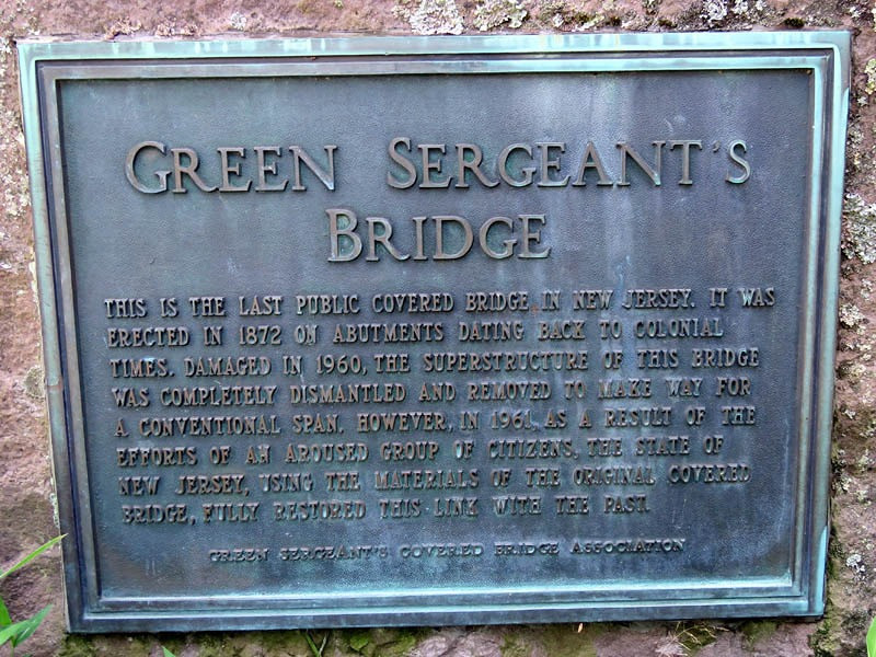 Green Sergeant Bridge is listed on the National Register of Historic Places as New Jersey’s last covered bridge.