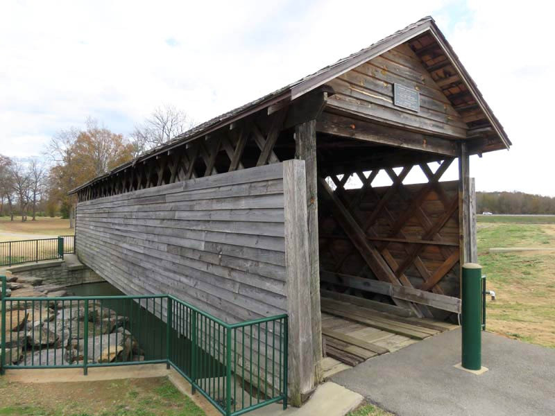 Built circa 1850, the 63-foot bridge is a rare construction of Multiple King-post trusses with Town Lattice over a single span. The Tallahatchee Covered Bridge, which was also located in Calhoun County, had a similar resemblance. It is currently the oldest existing covered bridge in Alabama. The bridge is maintained by the City of Oxford.