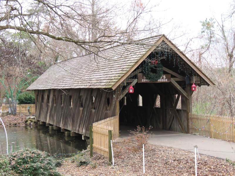 The Gilliland-Reese Covered Bridge was constructed in 1899 by a crew under the direction of Etowah County Commissioner Jesse Gilliland. A town Lattice truss made of rough-hewn lumber and covered with weathered shingles, originally located over Little Wills Creek at Gilliland Plantation in the vicinity of present-day Bethany Sitz Gap Road near Reece City. The bridge provided a crossing over the creek, thus improving area transportation, and was also a favorite meeting place. Eventually, the Gilliland-Reese Covered Bridge was replaced in the 1920s by the new Reeceville Road. In 1966, the bridge was donated to the City of Gadsden by the family of Judge H. Ross Gilliland, as it was threatened by the construction of Interstate 59. No other structures of the Gilliland Plantation are known to remain. The bridge was fully restored and moved to Noccalula Falls Park in 1967. Most of the Town Lattice truss setup was removed during restoration, making the bridge more of a Stringer construction. Therefore, it is currently classified as a non-authentic covered bridge.