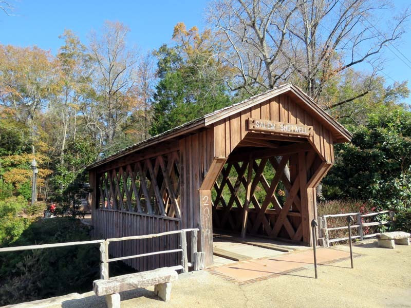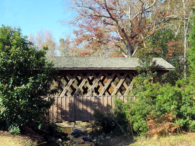 Originally built in 1900, the 43-foot bridge is a Town Lattice truss construction over a single span. It was destroyed by a fallen tree in 2005 at its original location near Salem, then rebuilt in 2007 at Opelika Municipal Park. The bridge is maintained by the Opelika Kiwanis Club and the City of Opelika.
