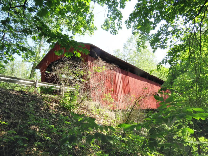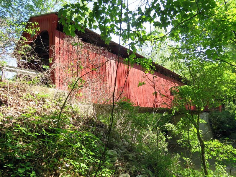 The Pine Bluff Covered Bridge is situated on CR 950 North, near CR 250 East, northeast of Bainbridge, Putnam County, Indiana.