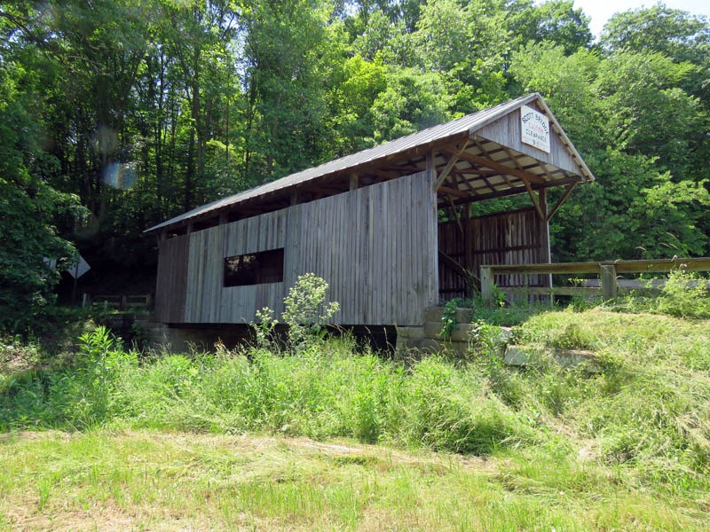 The 1885 Scott Covered Bridge is a historic wooden covered bridge located in Center Township in Greene County, Pennsylvania. It is a 41-foot-long (12 m), Queen post truss bridge with a raised seam tin-covered gable roof that crosses Ten Mile Creek. As of October 1978, it was one of nine historic covered bridges in Greene County.